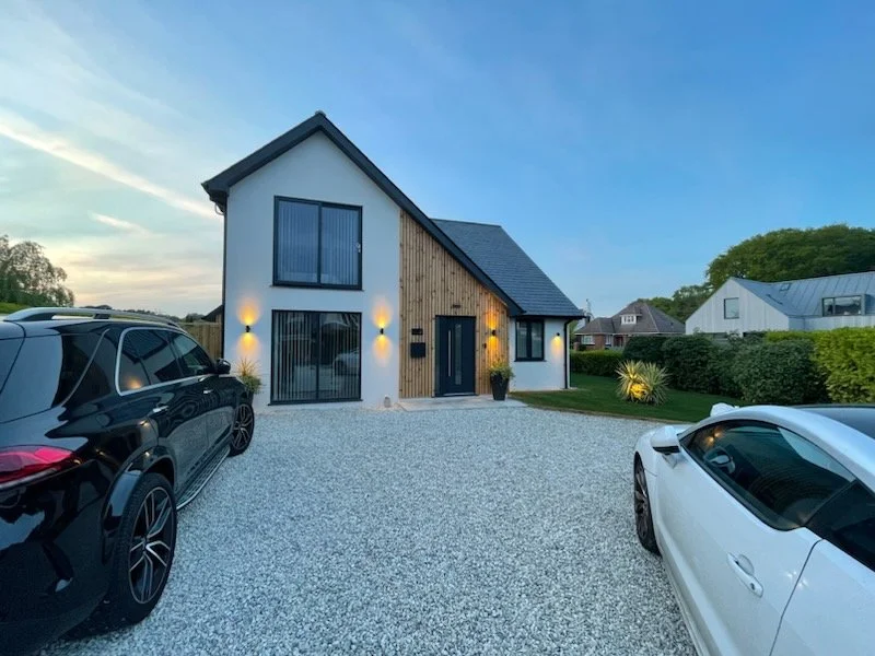 This property was originally a dated 3-bed bungalow that benefitted from a complete overhaul to become a 5 bed modern property. We completed extensions to both the front and rear elevations and built a double garage at the front of the property. The outside walls were raised for the introduction of the second storey and complete ground-works from front to back were completed by our team.